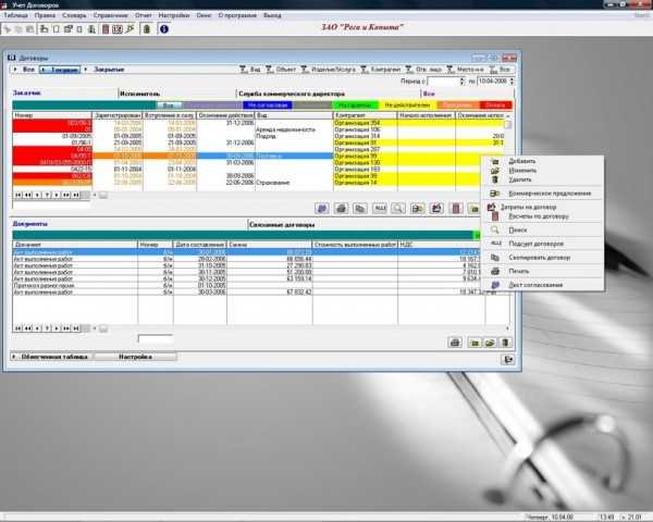 АС "Учет договоров" ориентирована на учет всех заключаемых договоров организации с посредниками. Данная программа предназначена для облегчения жизни бухгалтеров, юрисконсультов, сотрудников ПЭО, технических директоров и др. сотрудников, имеющих отношение к заключению и отслеживанию сроков договоров. Программа позволяет: