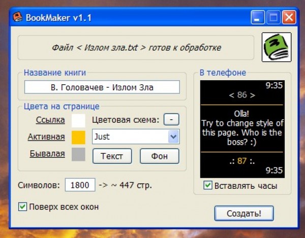 - BookMaker создает книги очень экономичного размера! Так что у Вас останется место на телефоне!