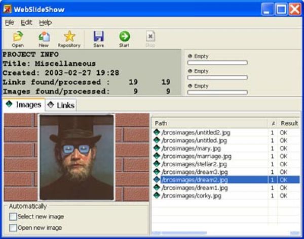 1ClickWebSlideShow - это уникальное приложение, которое автоматически скачивает картинки по заданному адресу и показывает их в слайд шоу. Вы можете одновременно просматривать и скачивать изображения с веб-сайта. Что касается скорости парсинга, то в данном скрипте используется сверхбыстрый алгоритм, который очень быстро находит изображения.