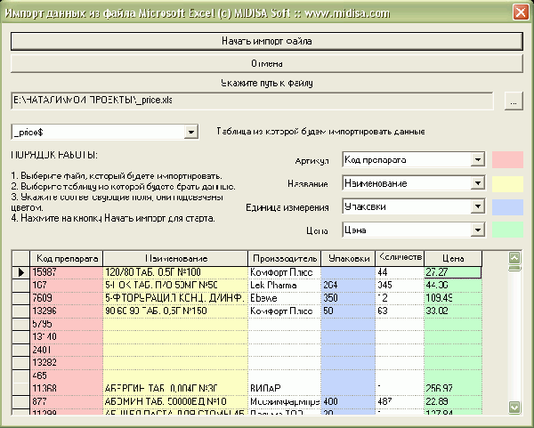 Цель создания данной библиотеки открывать файлы прайс листов и получать данные.