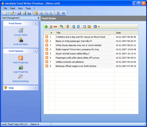 Feed Writer - профессиональный редактор новостных RSS-лент. Поддерживает практически все RSS форматы, включая RSS 0.91, RSS 0.92, RSS 2.0 и даже Podcasts. Feed Writer также полностью совместим с кодировкой UTF-8 и имеет встроенный FTP-клиент. Есть поддержка экспорта из Excel.