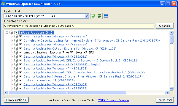 Бесплатная программа для загрузки всех обновлений к программам Microsoft Windows, Microsoft Ofice и Exchange 2003 без использования Windows Update.