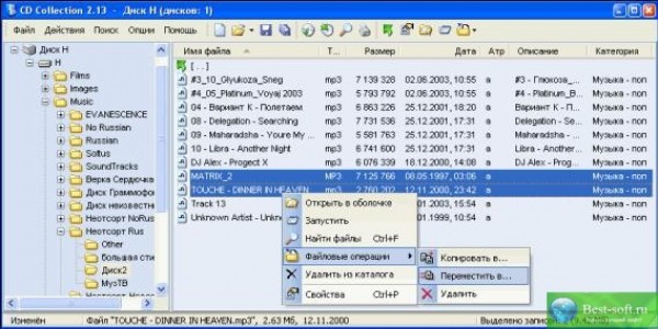 CD Collection - программа для организации каталога файлов, размещенных на любых носителях (жесткие диски, CD-R/CD-RW/DVD диски, дискеты ZIP и т.д). CD Collection сканирует диски, сохраняя информацию о расположении и названиях файлов, и затем позволяет просматривать все эти диски и искать файлы без наличия самих дисков! Для многих типов файлов извлекается дополнительная информация - для MP3 файлов это имя исполнителя, альбом и т.д., для файлов изображений - размер картинки и глубина цвета; для текстовых файлов сохраняется его часть (или весь файл целиком). Программа умеет сканировать внутри многих архивов (на данный момент поддерживаются 14 типов архивов), а также при необходимости извлекать любые файлы из этих архивов. Найдя в базе дисков нужные файлы по имени или по их описанию Вы можете, например, скопировать их в нужную папку - программа будет по очереди запрашивать нужные диски. Поиск файлов происходит практически мгновенно даже если в базе несколько десятков дисков; а поскольку он ведётся не только по имени файлов, но и по их описанию, поиск становится гораздо более эффективным (например, Вы можете сразу найти все картинки нужного размера). Имеется возможность создать отчёт по списку файлов главного окна, либо по результатам поиска файлов; отчёт формируется либо в HTML, либо в текстовом формате; можно сформировать отчёт и сразу поместить его в буфер обмена; каждый тип отчёта имеет свои настройки. Одной из особенностей CD Collection является гибкая организация базы данных дисков и, как результат, высокая скорость работы и нетребовательность к оперативной памяти по сравнению с аналогичными программами, иногда в несколько раз.