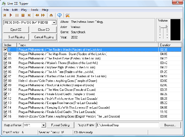 Live CD Ripper - граббер аудиодисков. С помощью этой программы вы сможете записать на компьютер музыку с CD-дисков. Следует отметить, что стандартный Windows Media Player тоже умеет это делать. Но отличие Live CD Ripper заключается в том, что он может записывать музыку не только в WMA, но и в WAV, MP3, OGG, APE. Также может получать информацию о диске с бесплатных серверов баз данных исполнителей - CDDB. Поддерживает теги ID3v1 и ID3v2. Имеет 14 скинов.