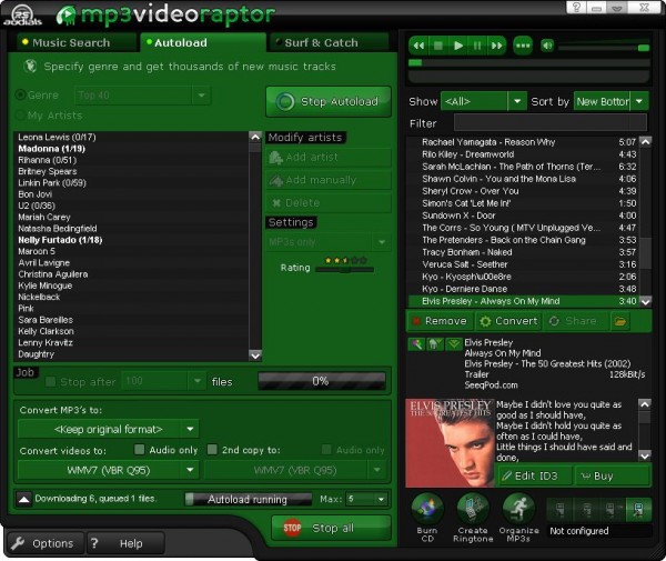 Millions of MP3 - программа для записи музыки с Web 2.0 радиосайтов. Удобный поиск музыкальных произведений. Конвертирование музыкальных видеоклипов в форматы mp4, 3gp, wmv, avi.