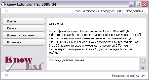 Вторая база - только на английском языке, зато содержит более 23 тысяч определений, что с вероятностью в 99,9 процента гарантирует вам успех в распознавании типа файла. Эта база - постоянная, не редактируемая.
