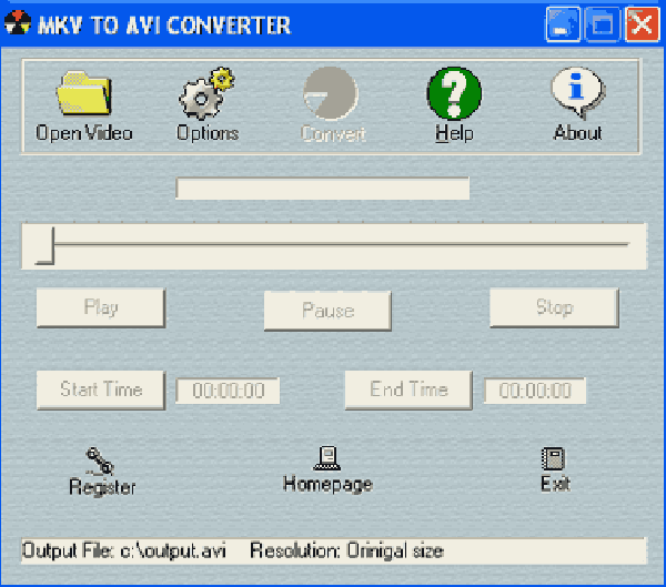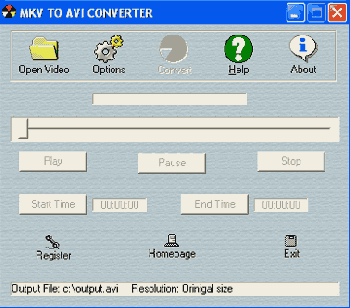 MKV to AVI Converter может конвертировать mkv файлы в avi, конвертировать mkv файлы в divx, конвертировать mkv файлы в xvid. Он также представляет собой конвертор, разделитель и редактор файлов MKV формата. Видео конвертор изменяет размер кадра, скорость смены кадров, видео и аудио кодеки сжатия. Основные особенности: Кодирует AVI с помощью DIVX, XVID, и др. Разделяет один видео файл на несколько более мелких. Изменяет размер кадра и устанавливает видео форматное соотношение. Изменяет размер клип файла за счет выбора различных степеней кодирования. Изменяет видео и аудио форматы сжатия для avi файлов. Открытая система сжатия видео и аудио файлов. Программа конвертирует многие видео форматы, такие как MPEG, MPG, ASF, OGM, WMV, VCD, SVCD, DAT в AVI файл.