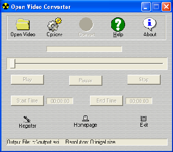 Open Video Converter конвертирует многие видео форматы, такие как MPG, AVI, ASF, WMV, VCD, SVCD, OGM, DAT, MPEG в AVI файл. Видео конвертор изменяет размер кадра, скорость смены кадров, видео и аудио кодеки сжатия. Основные особенности: Конвертирует Видео в AVI, Конвертирует MPEG в AVI, WMV в AVI, ASF в AVI, MPG в AVI, VCD в AVI, OGM в AVI, DAT в AVI, SVCD в AVI и др. Кодирует AVI с помощью DIVX, XVID, и др. Разделяет один видео файл на несколько более мелких. Изменяет размер клип файла за счет выбора различных степеней кодирования. Открытая система сжатия видео и аудио файлов.