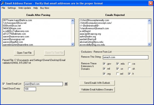 Программа для быстрого формирования списка email-адресов для рассылки. Пргодится, когда адреса перемешаны с другим текстом и важно исключить другой текст.