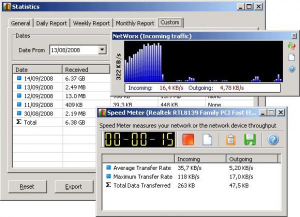 Бесплатная утилита для учета интернет-трафика и мониторинга скорости Интернета на вашем компьютере. Программа работает с любым кабельным или беспроводным подключением, а также модемом, предоставляя удобную статистику, отчеты и графики. Вы сможете измерить реальную скорость и загрузку вашего интернет-подключения, просматривать ежедневные, недельные и месячные отчеты и получать уведомления о перерасходе трафика.