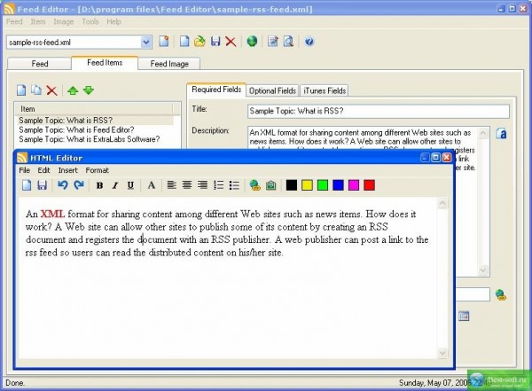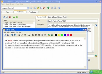 Вы хотите создавать профессиональные RSS ленты, но у вас катастрофически нет времени на изучение технологии RSS, тогда Feed Editor - решение для вас! Вам не нужно быть гуру компьютерных наук и знать все премудрости Интернет технологий - Feed Editor максимально упростит работу с RSS лентами. Всё что вам нужно знать - это, какая лента вам нужна. Всё остальное сделает за вас Feed Editor! Простой и понятный интерфейс максимально упрощает работу с лентами, а использование мастеров избавит от ошибок при создании RSS-лент. Feed Editor возьмёт не себя работу с различными RSS форматами, импортирует текст из CSV и HTML файлов, поможет просто отредактировать HTML в WYSIWYG редакторе, отредактирует XML и рисунки, даст возможность просмотреть полученные ленты и опубликовать их, поддерживает экспорт RSS-каналов в HTML, CSV и JavaScript. С Feed Editor вы всегда сможете поддерживать ленты в актуальном состоянии – редактор позволяет докачивать RSS ленты по FTP. Работа с популярным подкастингом также доступна из Feed Editor - вы можете закачивать свои записи на подкастинг-сайты также просто, как и созвать их. Теперь программа поддерживает еще и расширения Apple iTunes.