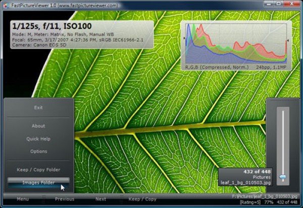 Бесплатный просмоторщик картинок. Отличается высокой скоростью открытия больших изображений. Предназначен для профессиональных фотографов.
