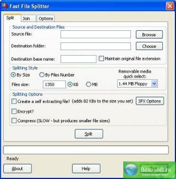 Программа для разрезания больших файлов на более маленькие, например, для того, чтобы записать на дискету. Настраивается по размеру файлов, либо по числу копий. Поддерживает шифрование файлов. Есть возможность определять пользовательские иконки для полученных sfx файлов.