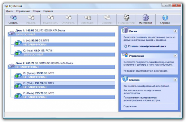 Это программа поддерживается как 32, так и 64 версиями Windows, поэтому проблем в использовании не должно возникнуть ни у одного пользователя. Данный софт предназначен для шифрования любой информации, используя алгоритм AES-256 CBC. “Замок” можно ставить как на разделы, так и на целые диски, включая съемные носители.