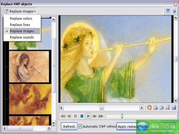 Программа позволяет декомпилировать FLASH-ролики и извлекать все его элементы. Конвертирует SWF файлы в FLA. Eltima SWF Decompiler извлекает звуки, изображения, видео, фигуры, фреймы, шрифты, тексты, кнопки, ActionScripts из любого SWF файла и сохраняет все полученные элементы в определенные папки на жестком диске.