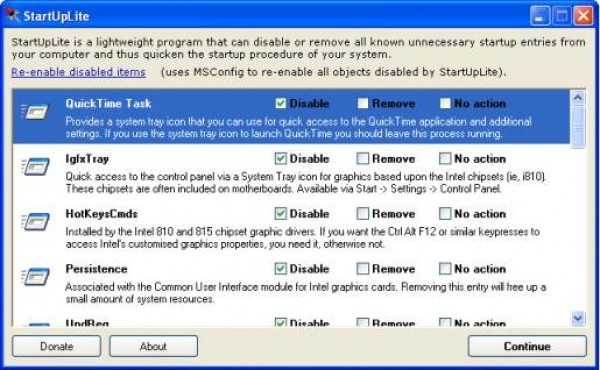 StartUpLite - это легкое и простое в использовании приложение, которое позволит сократить время запуска вашей системы. Программа позволяет отключить или удалить ненужные записи в автозапуске на компьютере, тем самым, ускорив работу системы.