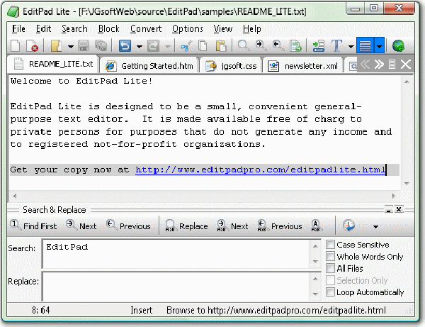 EditPad Lite - текстовый редактор со всеми необходимыми основными функциями. Бесплатна для некоммерческого использования. Идеальная замена Блокноту.