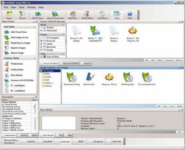 Эта программа способна создать до четырех виртуальных CD-ROM на вашем компьютере, причем система будет распознавать как реальные физические драйвы. Вы просто можете монтировать в них образы, созданные при помощи этой же программы, тем самым вы избавитесь от шума и увеличите скорость доступа к информации. Эта программа работает с образами форматов ISO и MDS.