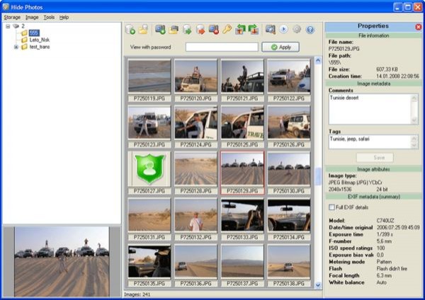 Hide Photos может шифровать и файлы и папки, использую при этом различные пароли. Имея удобный и понятный интерфейс в виде привычного проводника, понравиться каждому пользователю. Программа так же имеет ряд стандартных функций для «гляделок»: полноэкранный просмотр, слайд – шоу, и т.д.