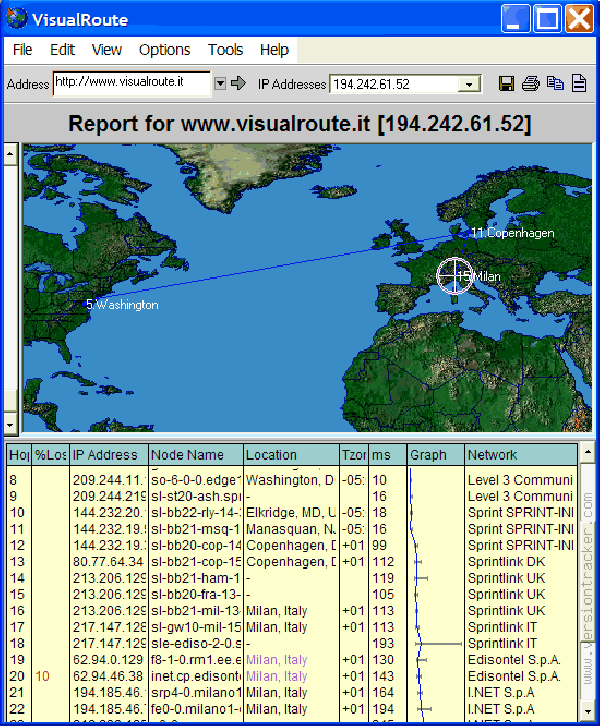 VisualRoute 13.0b – визуальный трассировщик. Эта программа позволяет определить скорость и траекторию прохождения информации и выводит это все на карту. Эта триал версия проработает 15 дней, после чего попросит от вас денег.