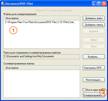 Document2PDF Pilot –программа –конвертер в PDF формат, поддерживающая все современные графические форматы. Среди поддерживаемых: PEG, GIF, TIFF, BMP, PNG, EMF, PPT, POT, PPS, XLT, XLS, XLW, DOC, DOT, WPS, WRI, RTF, HTML и др.