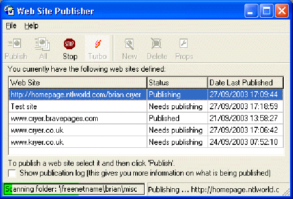 SitePublisher – программа для синхронизации данных между вашим крмпьютером и вашим же web – сайтом. Если сайт нуждается в постоянном обновление, то эта программа незаменима.