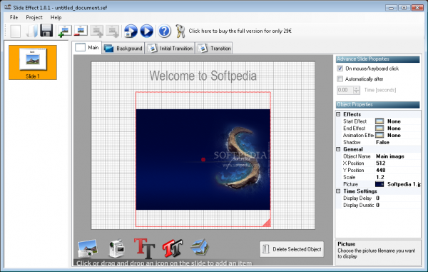 Slide Effect – мощная программа для создания презентаций. Обладает кучей возможностей для создания профессиональной презентации.