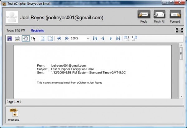 eCipher представляет собой профессиональный инструмент, позволяющий Вам читать и отправлять зашифрованные сообщения через установленный на вашем компьютере почтовый клиент. Текущая версия поддерживает чтение почты зашифрованного с любого веб-клиент (Gmail, Yahoo!, AOL и т.д.).