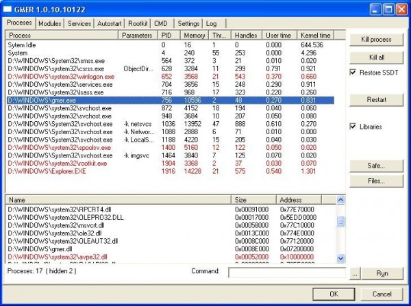 Руткиты частенько становятся объектом головной боли пользователей из-за трудности своего обнаружения. GMER найден все вредоносные процессы в вашей системе и поможет их заблокировать.