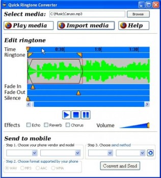 С помощью встроенных средств, программа самостоятельно определит какой именно фармат нужен вашему телефону и сконвертирует рингтон в этот формат. Программа поддерживает большенство современных форматов: MP3, AAC, WMA, WAVE.