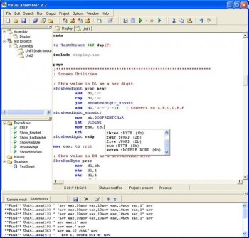 Эта программа является визуальной оболочкой для работе c Assambler (TASM, MASM и др.). Изначально создавалась в соответствии с требованиями как новичков, так и профессионалов.