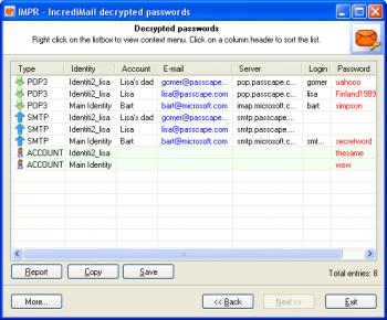 IncrediMail Password Recovery является программой для возврата забытых или потерянных паролей от программы IncrediMail. Никогда нельзя рассчитывать на собственную голову в деле хранения паролей, ведь в любую минуту он просто может вылететь из нее.