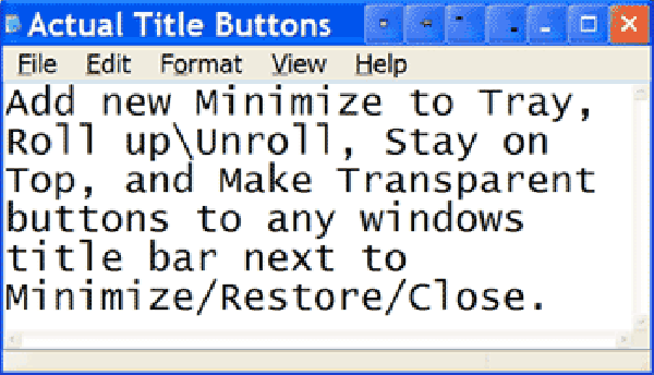 Программа позволяет добавить следующие кнопки: , "Минимизировать в трей", "Свернуть до заголовка/Развернуть", "Сделать прозрачным", "Поверх других окон" и др.