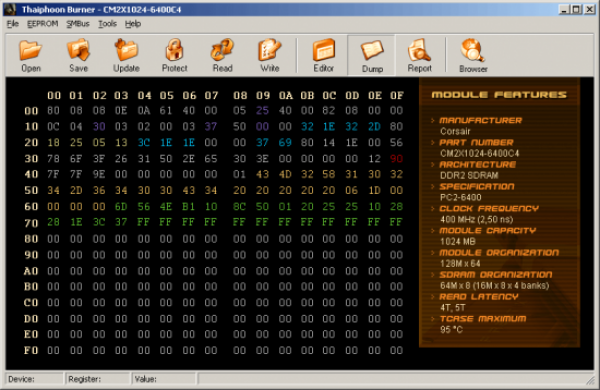 Thaiphoon Burner – программа, предназначенная для чтения и копирования информации из SPD. С помощью этой программы вы сможете перепрограммировать SPD напрямую или в режиме эмуляции.