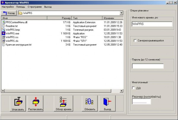 Простой архиватор файлов и папок. Основной минимальный набор функций: упаковка, распаковка, самораспаковка, установка пароля, создание многотомного архива, обзор содержимого архива. Расширение упакованных файлов -