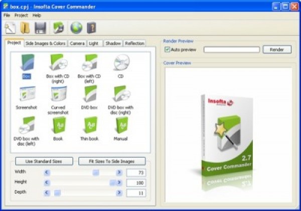 Insofta Cover Commander – программа для простого и удобного создания виртуальных коробок, книг, руководств т.д., для вашего программного обеспечения. Воспользовавшись этим программным обеспечением, представляемая вами программа сразу же приобретет взрослый и профессиональный вид.