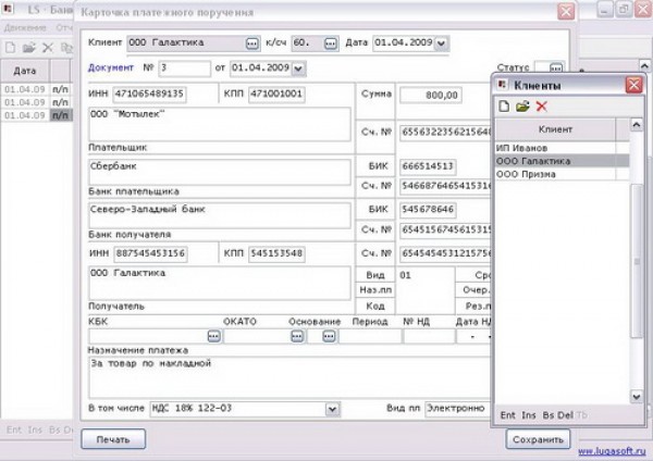 Учет операций по банку организации или индивидуального предпринимателя. Осуществляется выписка платежных поручений и требований, а также ввод выписок по банку с одновременной разноской по корр.счетам. В наличии печать ведомостей расшифровки по дням и клиентам, оборотная ведомость и ведомость операций. Ждем отзывов.