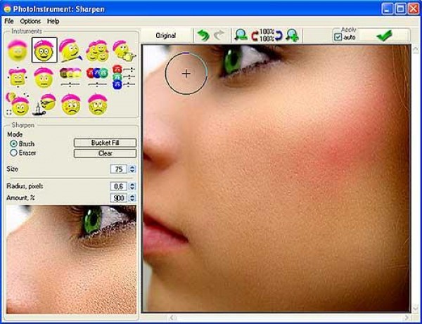 Для программы весящей чуть больше двух мегабайт, Photoinstrument обладает более чем неплохим набором функций. Например, с помощью нее вы сможете убрать морщины, увеличить четкость и, так сказать, придать фотографии более гламурный вид. Интерфейс программы крайне прост и не вызовет нарицаний ни у новичка, ни у опытного пользователя.