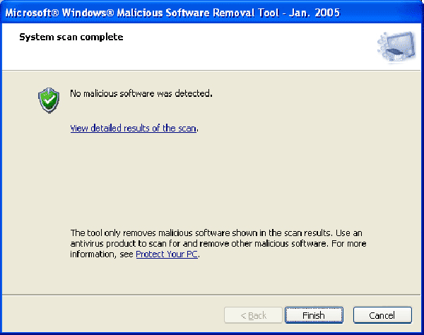 Microsoft Malicious Software Removal Tool – программа для сканирования вашего компьютера на предмет наиболее популярных вредоносных программ, таких как Blaster, Sasser и Mydoom.