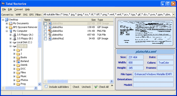 Total Vectorize – удобная программа-конвертер изображений в формат Windows Metafile (WMF), Scalable Vector Graphics (SVG) и Encapsulated PostScript (EPS).
