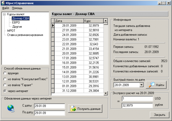 Программа «Юрист Справочник» представляет собой набор справочной информации с широкими возможностями по проведению экспресс-расчетов. Программа распространяется бесплатно.