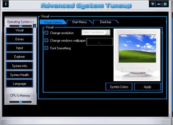 FREE Advanced System Tuneup – набор инструментов для оптимизации системы. Имеется возможность запуска загрузочного экрана. Программа бесплатна, но имеет весьма внушительный арсенал для настройки системы.