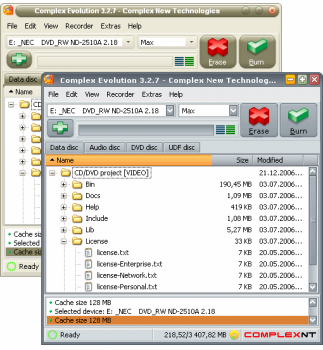 Complex Evolution – программа для записи всех видов дисков. Основной задачей авторов стало совмещение простоты и удобства в использовании, поэтому они нарочито отказались от кучи второстепенных функций.