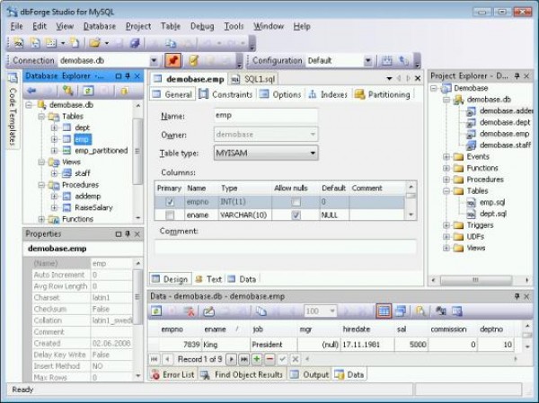 dbForge Studio for MySQL – удобная программа для дивелоперов и администраторов для работы с базами данных MySQL. Программа отличается дружелюбием к пользователю, что, конечно, скажется на интенсивности работы.
