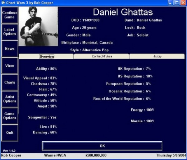 Chart Wars – это бесплатная игра-симулятор музыкальной группы. В ней вам предстоит взять на себя руководство группы и продвинуть ее на музыкальном рынке как можно выше в рейтинге.