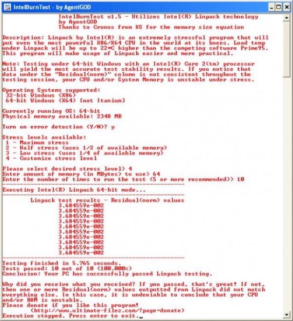 IntelBurnTest – программа для стрессового тестирования процессоров фирм производителей Intel и AMD. Поддерживаются все процессоры 32 и 64 битных систем.