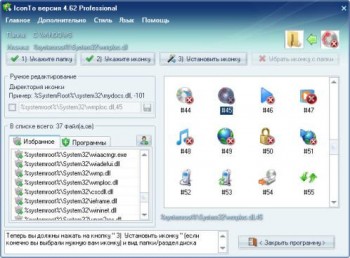 IconTo – программа для изменения внешнего вида стандартных папок Windows на указанный вами. Для более быстрого и удобного доступа к значкам, программа сама ищет системные ресурсы, в которых находятся необходимые файлы.