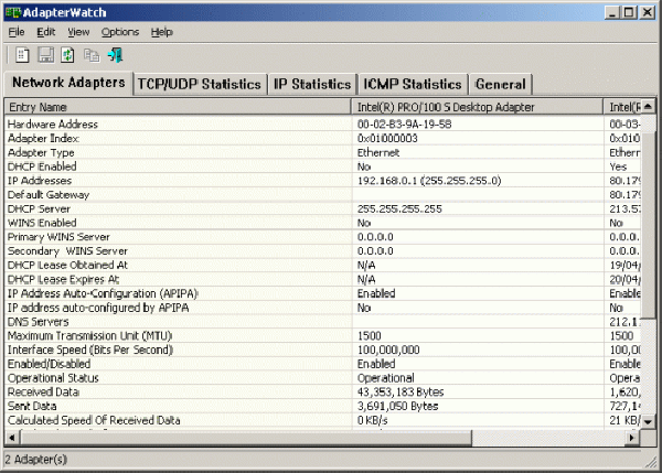 AdapterWatch – очень маленькая и удобная программа для отображения исчерпывающей информации о ваших сетевых адаптерах.