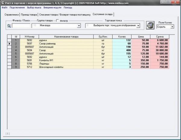 Программа создана для предпринимателей занимающихся любым видом торговли. Программа позволяет учитывать поступление товара на торговые точки, контролировать состояние торговых точек и производить сбыт с торговых точек.