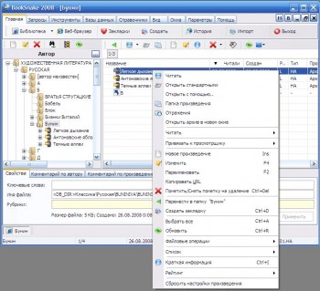 BookSnake – программа, предназначенная для работы с библиотеками мультимедийных произведений. Программа включает в себя удобный каталогизатор и семь просмотрщиков.